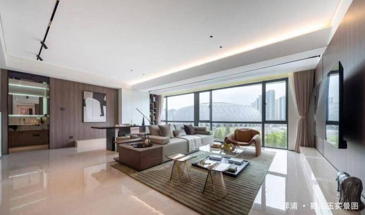 而高层雅奢空中墅,采用公建化立面设计,跃制上下两层户型打造,户户臻配露台设计,让居者在城市的喧嚣中也能悠然享受精致生活。独立电梯前室设计,不仅提升了居住的私密性与尊贵感,更彰显出居者的非凡品味。全景落地窗配置,配以大尺度窗墙比,营造出宽广的视野景观,无论是俯瞰奥体全貌,还是与自然亲密接触,皆能轻松实现。