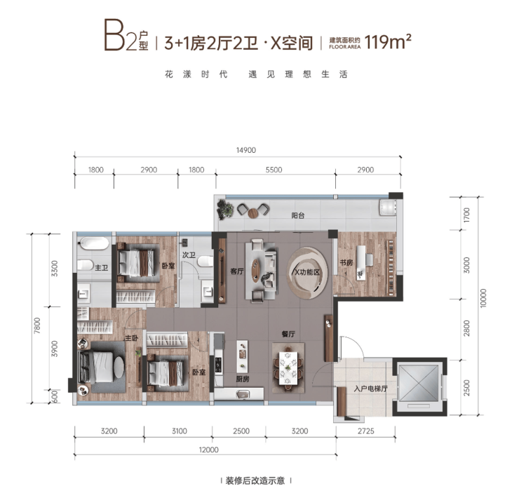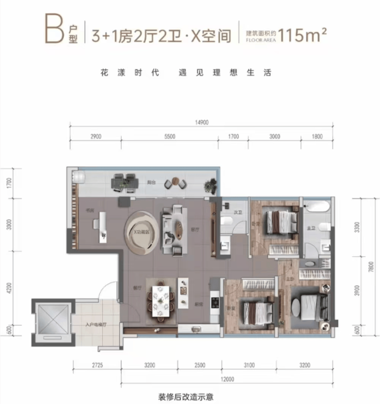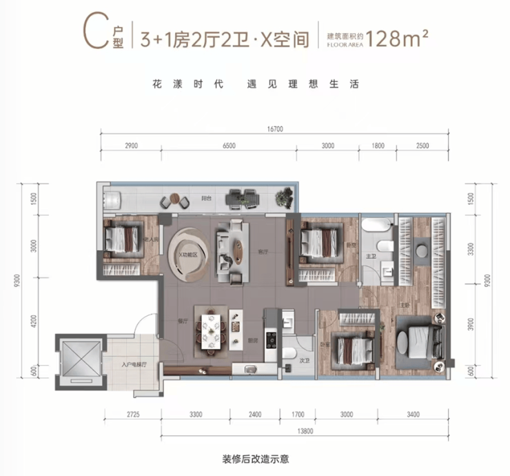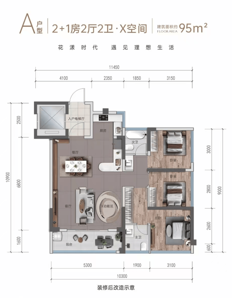 目前,花漾云岩在售建面约 95 - 128㎡阔变美宅,今年买今年住。户户均标配宽景阳台,客厅还预留了可变空间,N + 1 的百变设计,既提高了得房率,又增强了实用性,能够灵活适应品质客群以及改善型家庭不同阶段的成长需求。