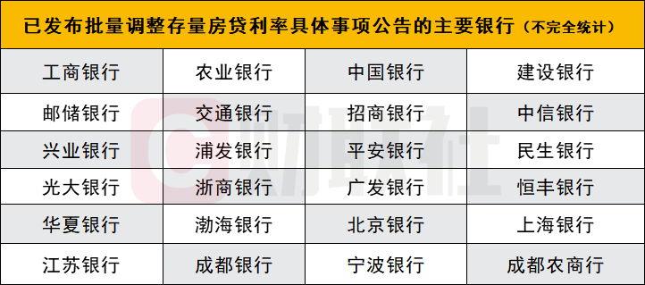 12家股份行、多家城商行农商行跟进宣布!存量房贷利率均将于25日统一批量调整