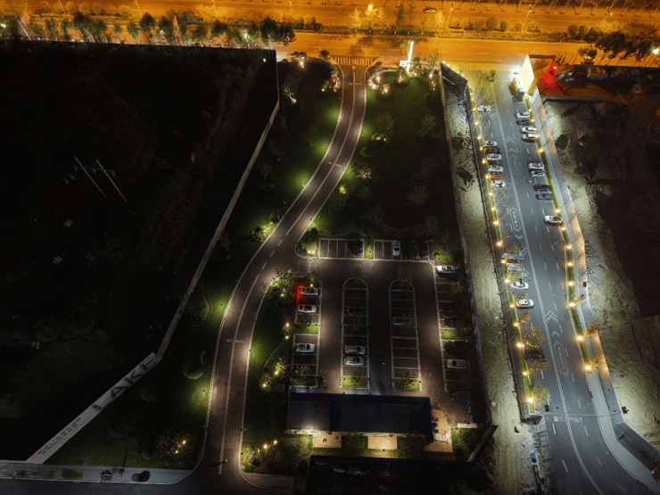 在建筑与园林的打磨上,项目同样不惜工本。建筑立面汲取湖波与游艇的流线灵感,以超奢游艇式曲线造型,勾勒出优雅的天际轮廓;园林则由杭州GAD设计团队执笔,打造一湖双园六境景观体系——17亩中心湖园与8000㎡森境园林相映成趣,模拟自然林地结构,采用乔木+灌木+地被三层叠植手法。更从泰山脚下精选20棵全冠泰山松移植入园,成为园林中最具记忆点的自然艺术品。