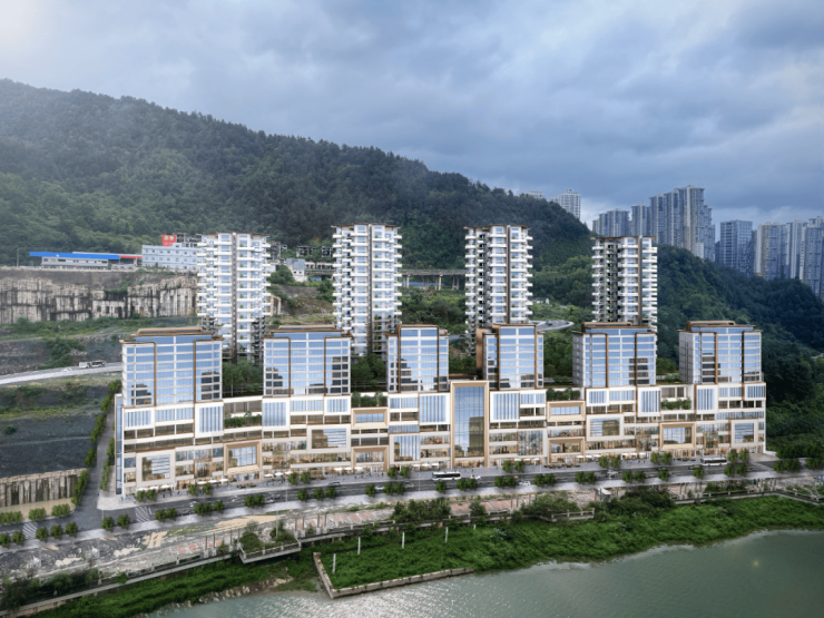 从住宅户均建面,以及很可能用上金属线条的住宅外立面效果图来看,该项目定位应为改善,而滨水傍山的特性,良好的河景景观面,应该也是为改善属性服务的。