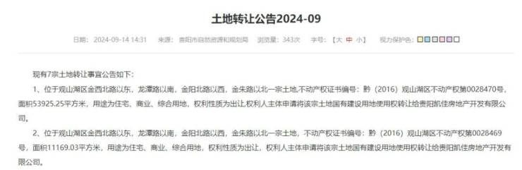 公开信息显示,该项目用地,系去年9月14日公开转让给贵阳凯佳房地产开发有限公司的。