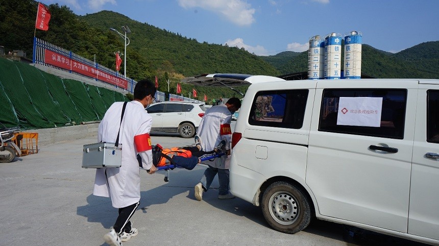 国庆长假期间,桐新高速公路建设者放弃休假,开展了瓦斯超限应急救援演练。这是演练现场。(中铁二十五局 供图)