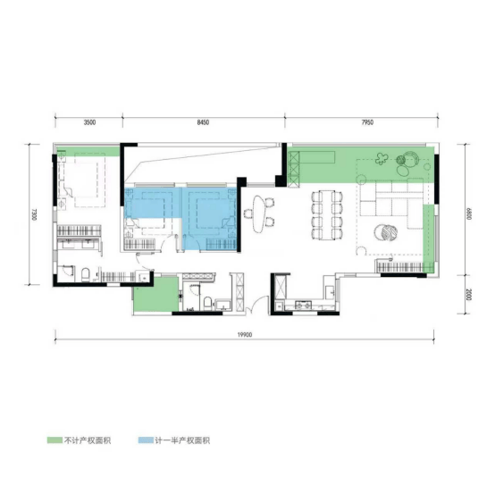 3、户型得房率高,并创新打造出总长约16-20米的多面宽布局,大面宽、大采光,巨幕观景,南北通透。