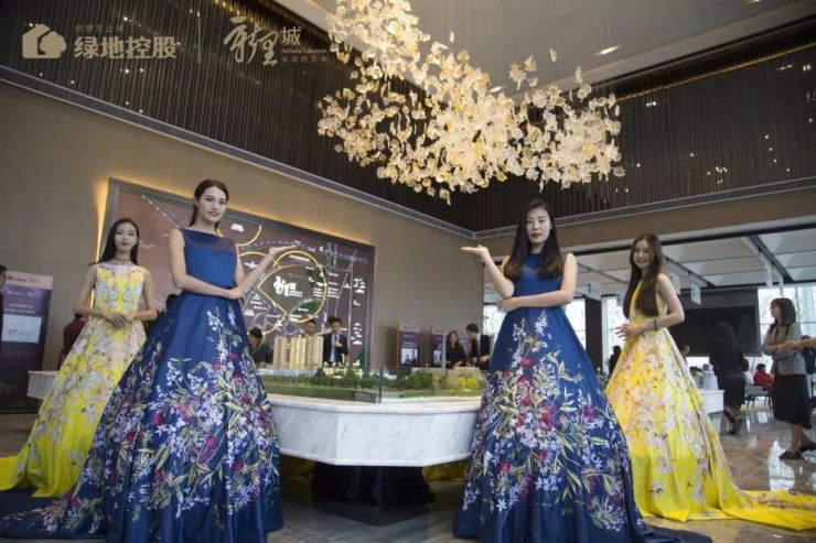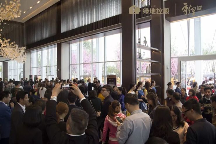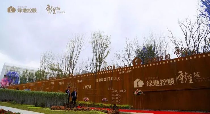 绿地新里城销售中心大门在万人瞩目下盛启,现代简约工业风格融合艺术美学,象征贵铝精神的标致烟囱迎接每一位上宾。迈入销售中心大门,映入眼帘的是金碧辉煌灯火通明的长廊,阶梯两旁一步一景陈列庄严,引人入胜。