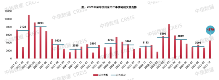 中指研究院数据显示,10月杭州二手房市场成交规模大增,全市共成交二手住宅4579套,环比增长62.6%,同比增长73.7%。