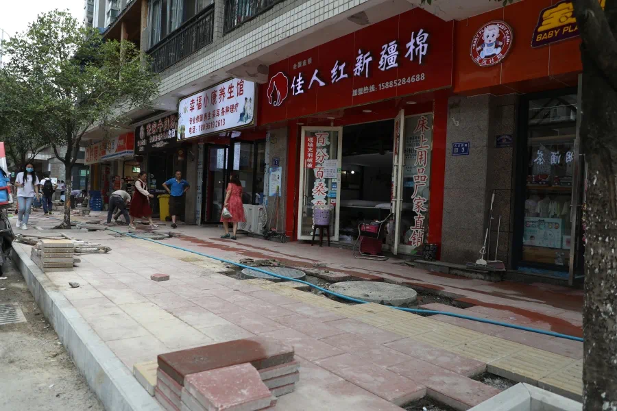 石龙西路背街小巷治理现场,局部铺上了崭新地砖