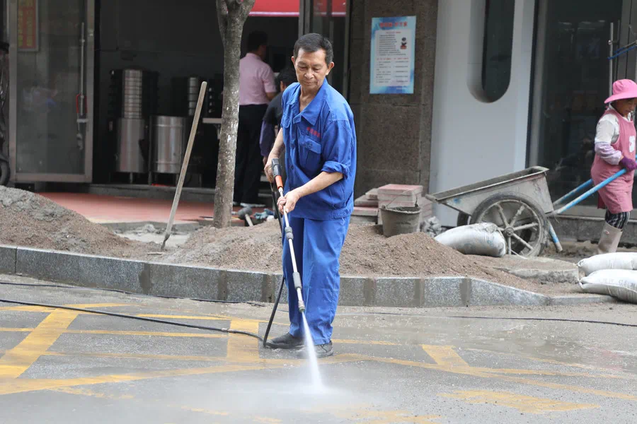 工作人员为保持整洁不定期清洗路面