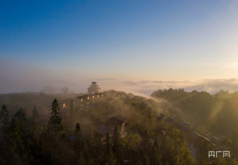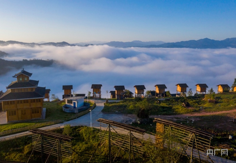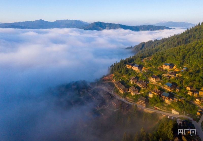 从江县丙妹镇大歹苗寨景区云雾弥漫(央广网发 吴德军 摄)