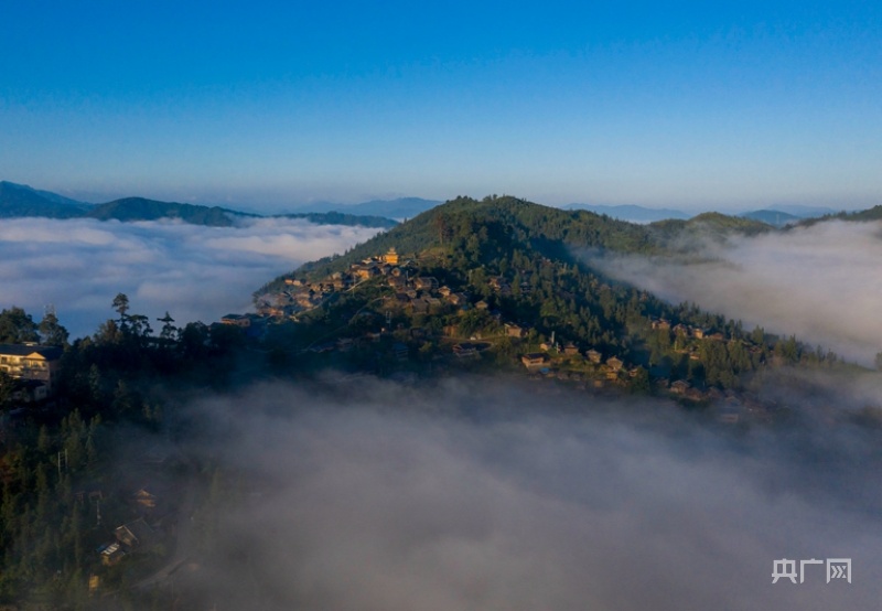 从江县丙妹镇大歹苗寨景区云雾弥漫(无人机照片)(央广网发 吴德军 摄)