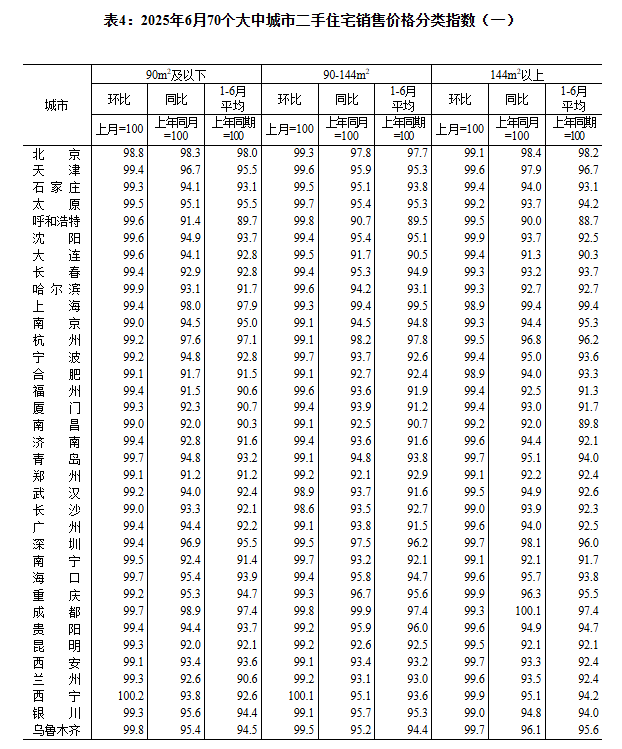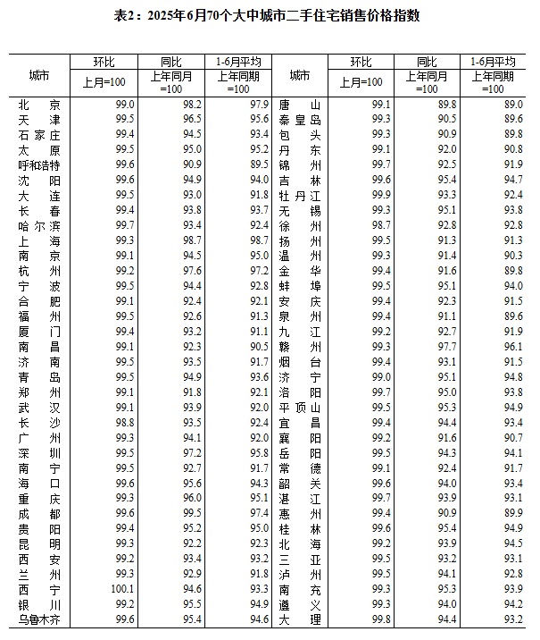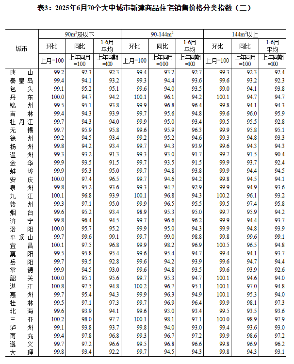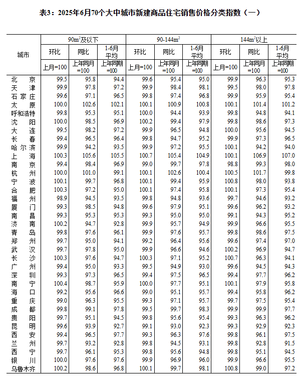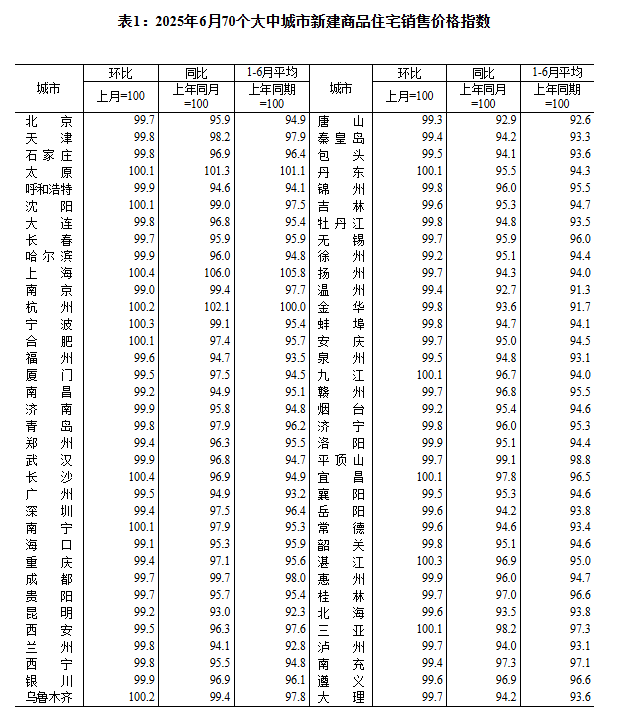 国家统计局城市司首席统计师王中华就2025年6月份商品住宅销售价格变动情况统计数据进行解读。