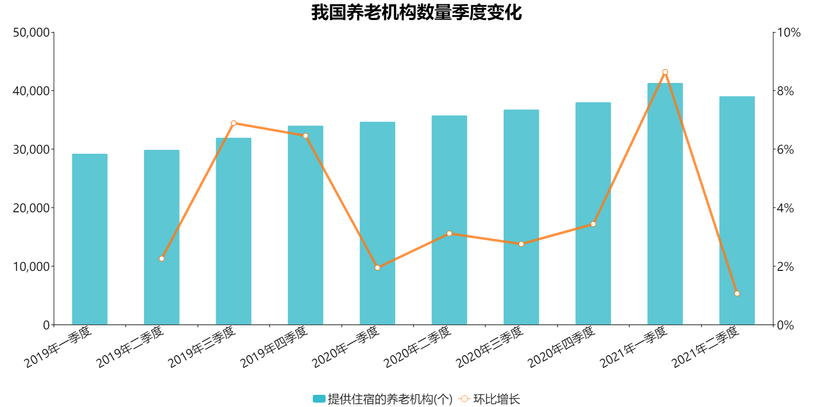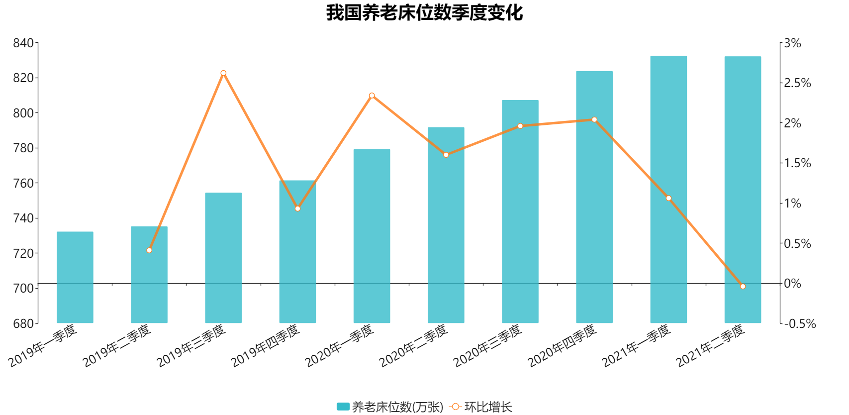 根据民政部统计的数据,截至2021年二季度,我国共有提供住宿的养老机构39085个,环比增长1.07%;共可提供床位约495万张,全国范围内,平均每千名65岁以上老人才拥有25.8个养老机构床位,而大部分的省市居于全国平均数之下。