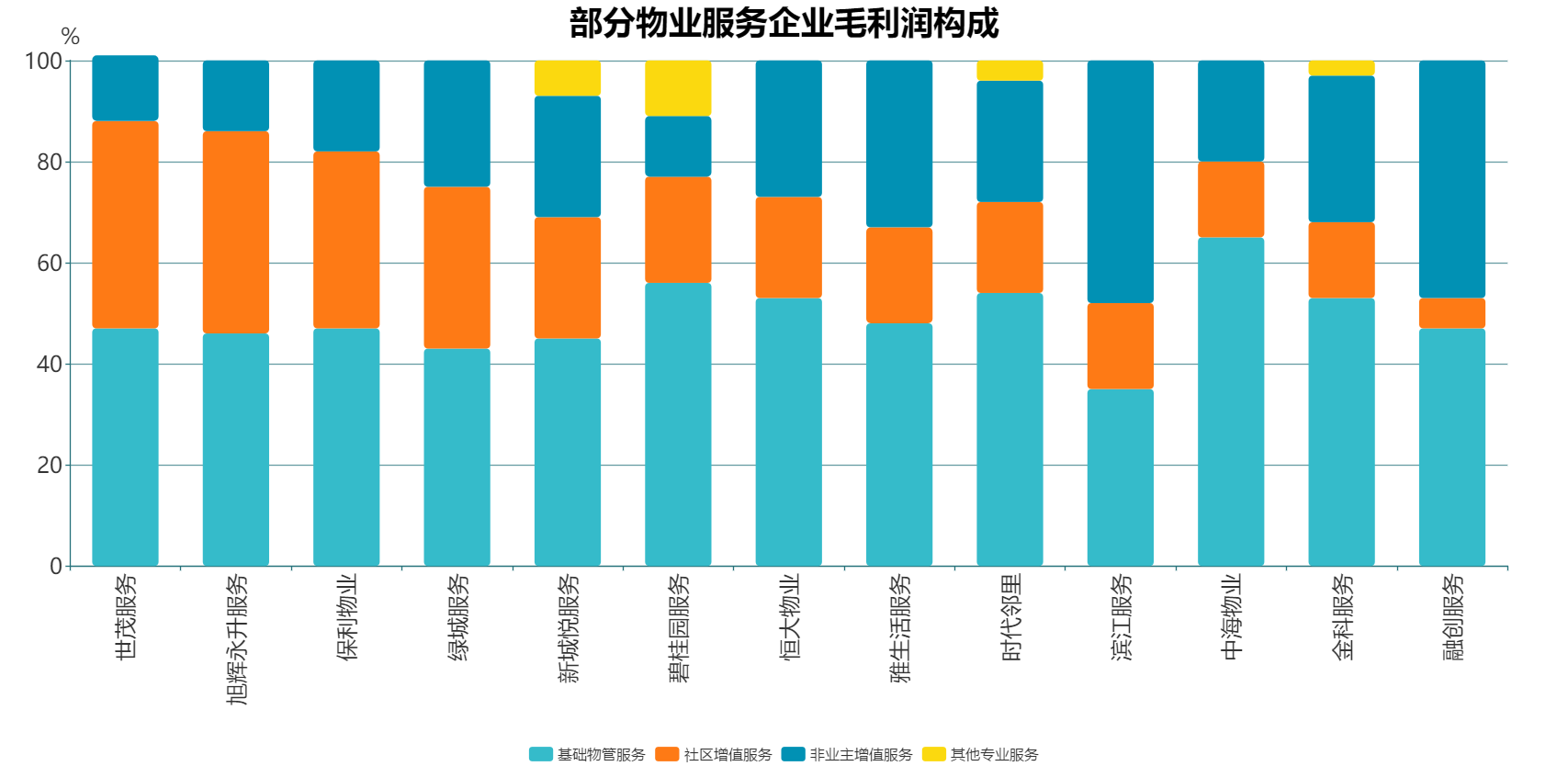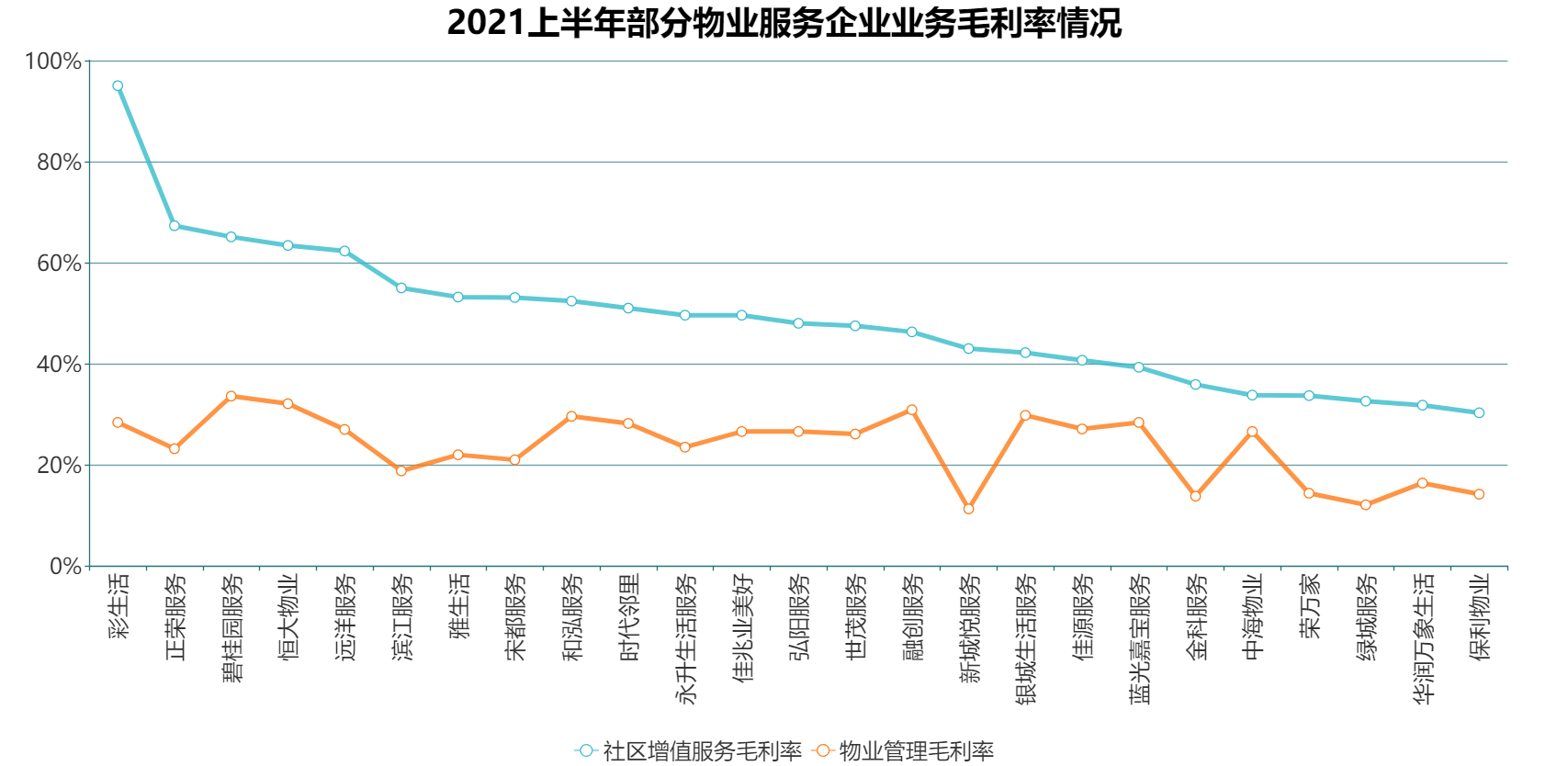26家样本物企的基础物管服务毛利率在10.6%到34.6%之间,均值为23.72%,而社区增值服务毛利率区间为30.3%-95%之间,均值为48.97%。