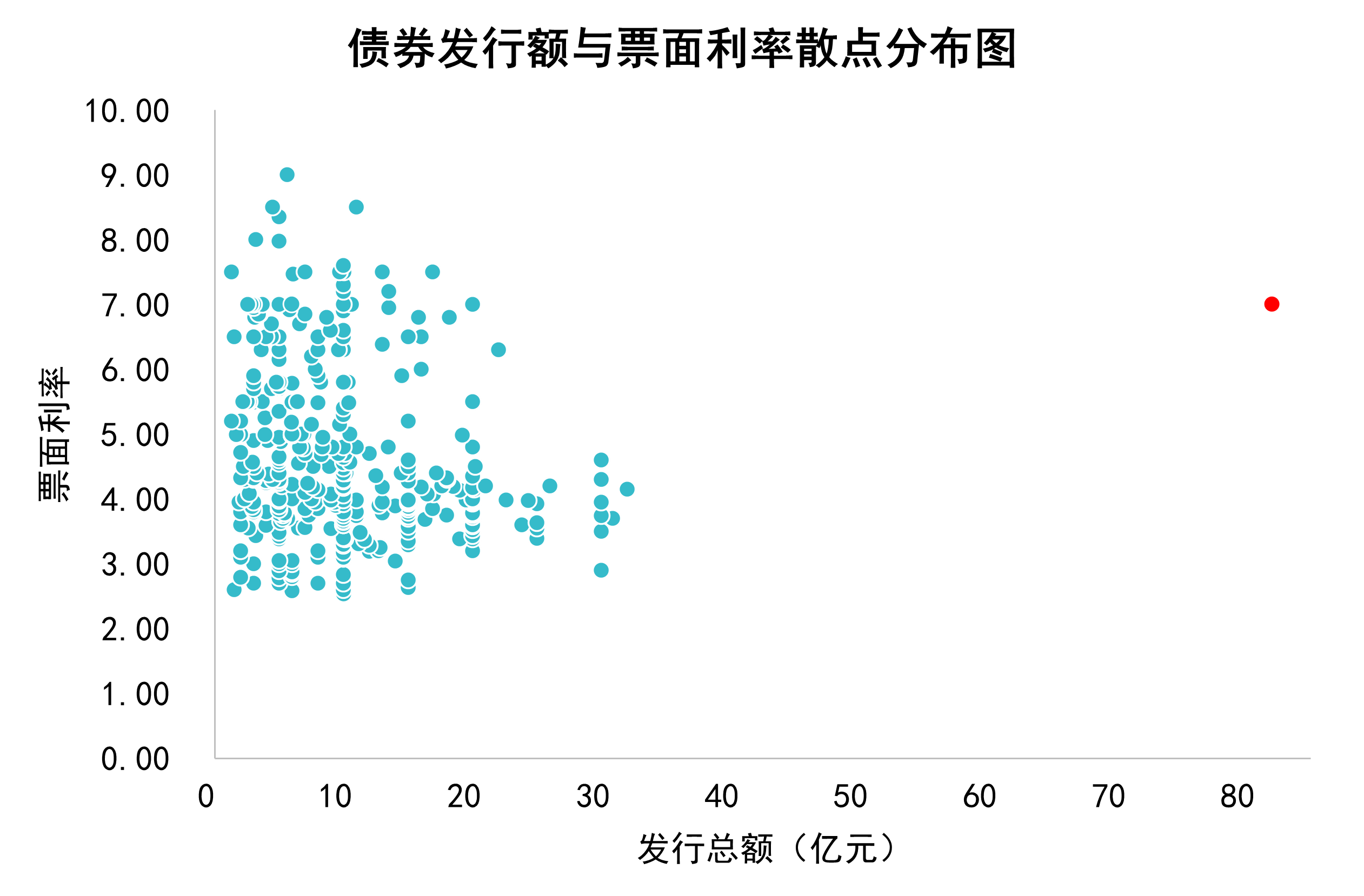 上半年发行的债券中,约43.5%的债券发行总额落在10-30亿区间;约48%的债券发行总额落在1-10亿区间。中国恒大于2021年4月发行单项总额较大债券,发行总额为82亿元,票面利率为7.0%,融资成本高于平均水平。
