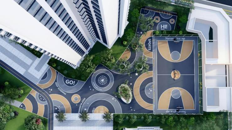 其中,20大户外悦动空间包含阳光篮球场、跃动广场、热力跑道、星空营地、萌宠乐园、元气欢乐岛、植物科普园、飞翔羽毛球场、围炉林语、星空吧台、未来生活馆、水中汀步、元气森林、中央会客厅、一米菜园、疗愈花园、归家大道、天空之境、落瀑溪谷、迎宾曲径等场所,让不同年龄段的业主都能找到适合自己的活动天地。