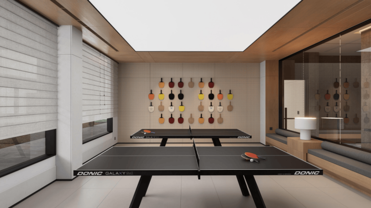 而5大架空层功能空间也打造了棋牌、乒乓球室、儿童空间、健养空间、邻里空间等全龄全类空间,构成了一个全方位、全龄段的生活服务体系,更好地满足业主多元化的生活需求与兴趣爱好。