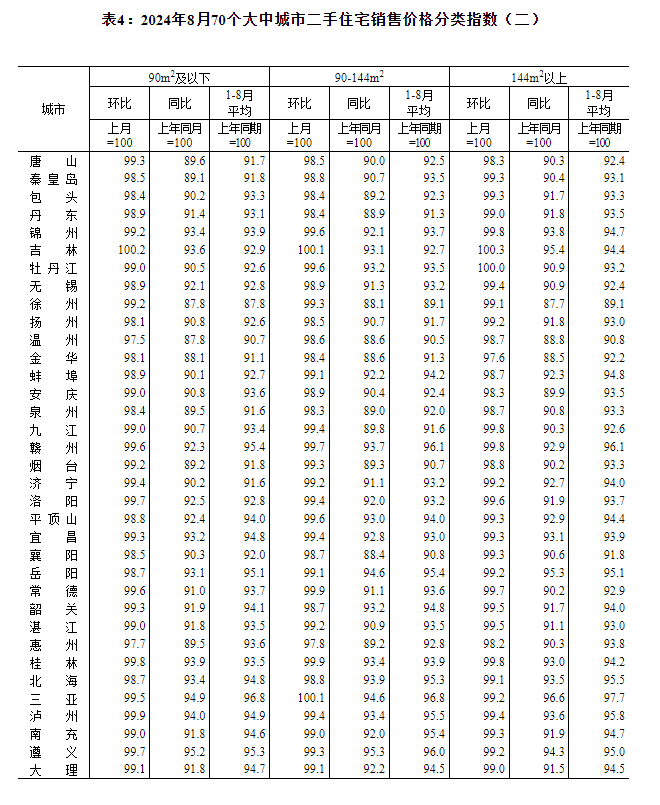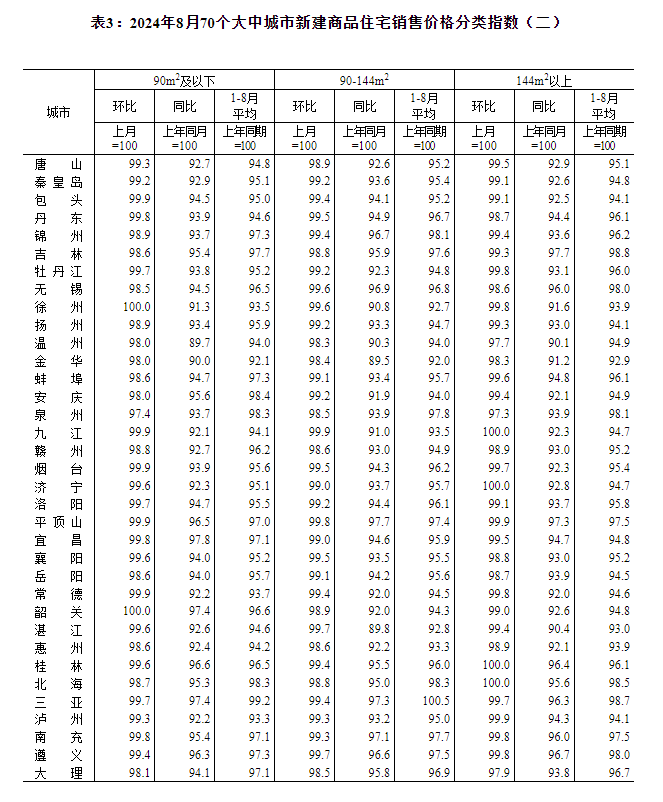 8月70城房价出炉!各线城市商品住宅销售价格环比下降、同比降幅总体略有扩大