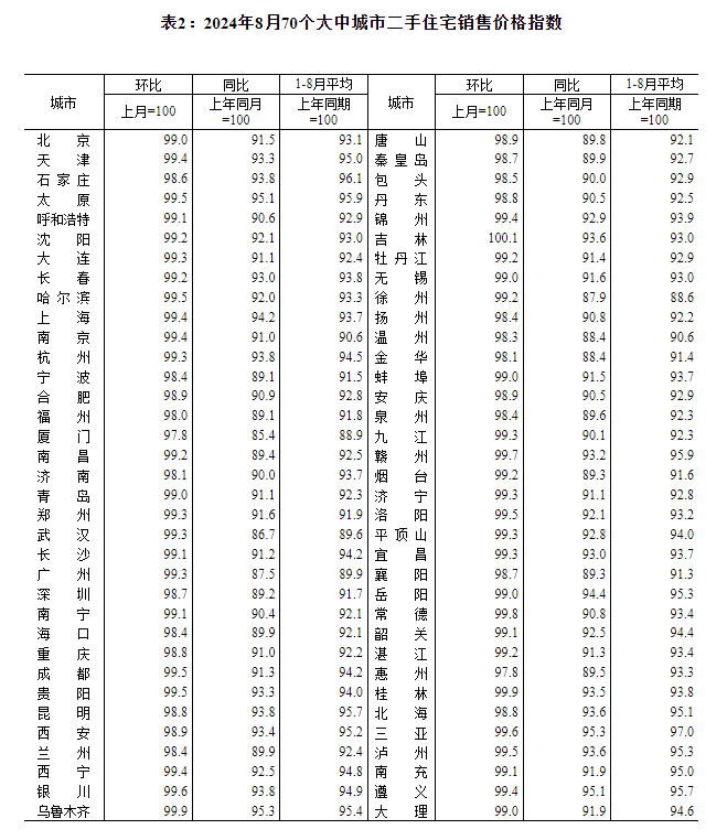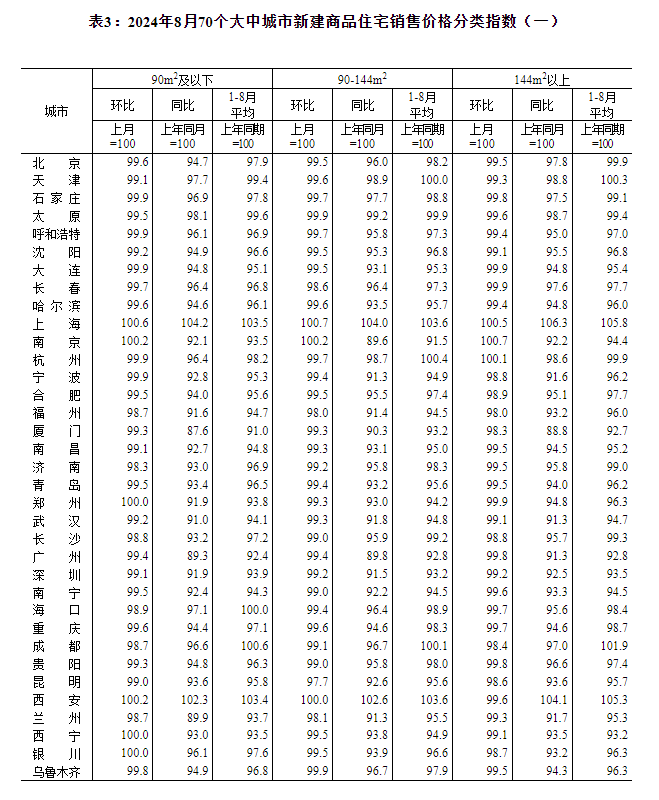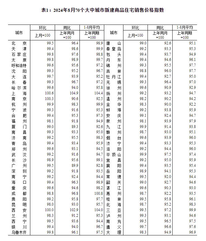 国家统计局城市司首席统计师王中华就2024年8月份商品住宅销售价格变动情况统计数据进行了解读。