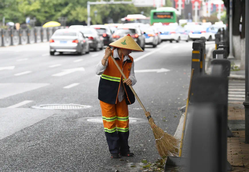 环卫工人在瑞金路上打扫卫生