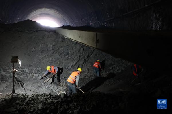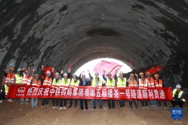 10月12日,工作人员在播尧一号隧道内庆祝顺利贯通。