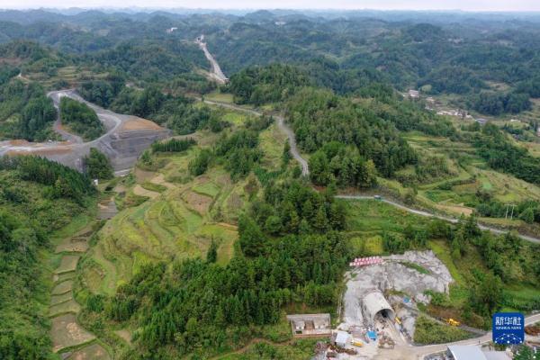 这是贵南高铁播尧一号隧道入口(10月12日摄,无人机照片)。