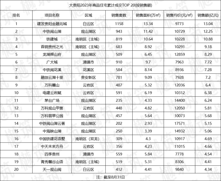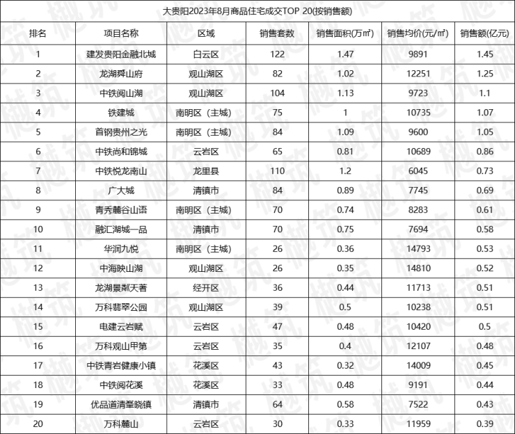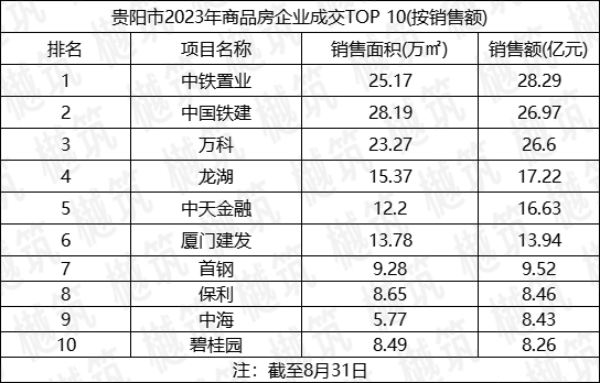 文章最末,来看看截至8月底,贵阳六区房企的累计销售业绩排名。