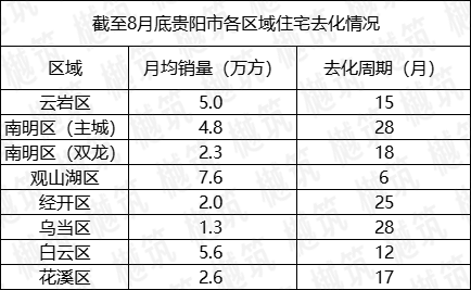 住宅去化周期方面,截至8月底贵阳六区整体水平较7月上涨了1个月,来到了16个月,继续往供大于求的方向上又迈了一步。