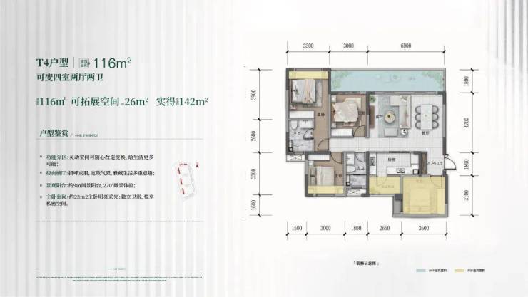 如今,融汇·湖城一品7#楼栋火热在售,建筑面积约116㎡阔景四房火热在售中。约6米的横厅+餐客厨一体化+大瞰景阳台,阔尺度赋予生活无限想象;约9米宽阔瞰景阳台,270°宽幕视野,以最大限度匹配和享有园林景观;约23㎡主卧拥有独立卫浴,尊崇主人的私人空间,生活从容的套房式享受;可拓展空间高达26㎡、实得142㎡,无法定义的空间让生活卓尔不凡。进退有度的奢阔四房空间,轻松满足全生命周期的需求。