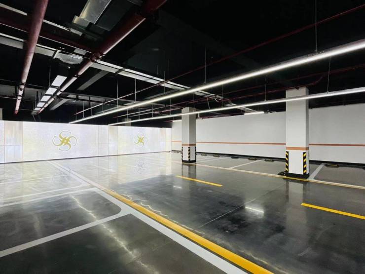 南溪地下车库,超越传统功能空间的定义,以光影艺术开启归家的第一幕礼仪。匠心独运地于入口处设置南溪专属LOGO投影,车辆驶入的瞬间,品牌印记如荣耀徽章般映照于前行之路,尊崇感油然而生。