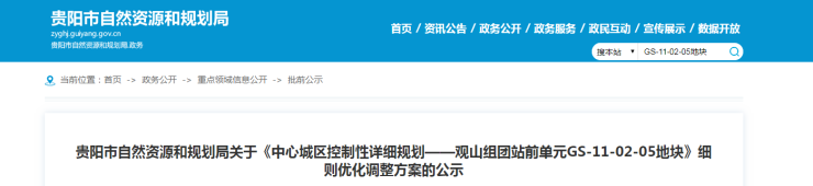 据查阅,2019年10月29日,关于《中心城区控制性详细规划(细则)--观山组团站前单元GS-11-02地块》规划方案公示的公告发布。