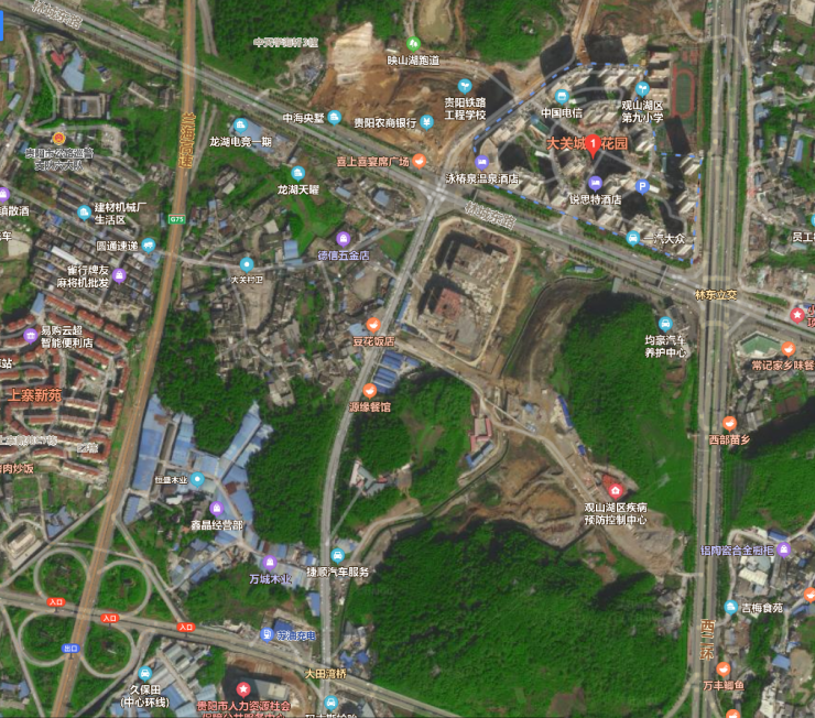 站前单元 GS-11-02-05 地块上已有观山湖区肿瘤医院、观山湖区疾病预防控制中心等医疗项目,以及中海映山湖、龙湖天曜、大关城市花园等住宅项目。