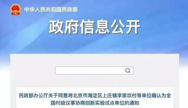 近日,民政部网站发布《民政部办公厅关于同意将北京市海淀区上庄镇李家坟村等单位确认为全国村级议事协商创新实验试点单位的通知》,同意将北京市海淀区上庄镇李家坟村等497个单位确认为全国村级议事协商创新实验试点单位,其中贵阳2个村镇入选。