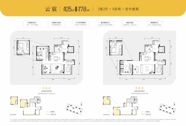 此外,相比起一期,这两个户型在采光前室的打造上,也更上一层楼,可以说是充分利用了公摊面积,打造零公摊、甚至负公摊产品。