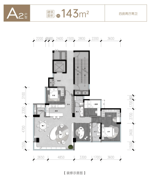据悉,投控甲秀项目共推出四种户型,建面分别为143、180和225平方米;