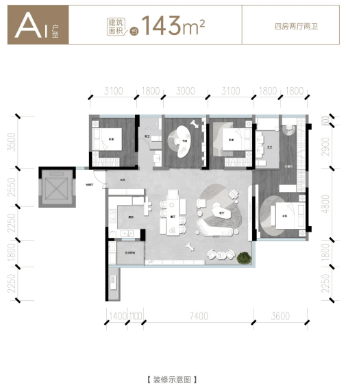除143边户户型外,均为端厅设计,且即便是143边户户型,客厅也有转角玻璃增强采光面。