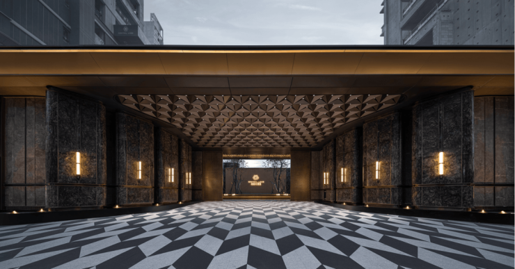 入口门庭层面,乾麟龙观宸取意上海半岛酒店风范,采用铂金钻奢石、星耀灰石材等进口材质,组合约50米超长门厅界面集成酒店式落客区、迎宾叠水景墙、艺术雕塑长廊,营造从城市喧嚣到社区静谧的过渡体验,结合定制光纤灯光系统,模拟自然星光,强化高级仪式氛围,兑现“海派印象风格”。