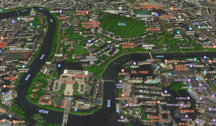 该地块位于南明区观水路与宝山南路交叉口西南侧,东邻宝山南路,南邻南明河,西临南明观风山,北邻观水路。