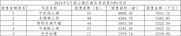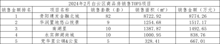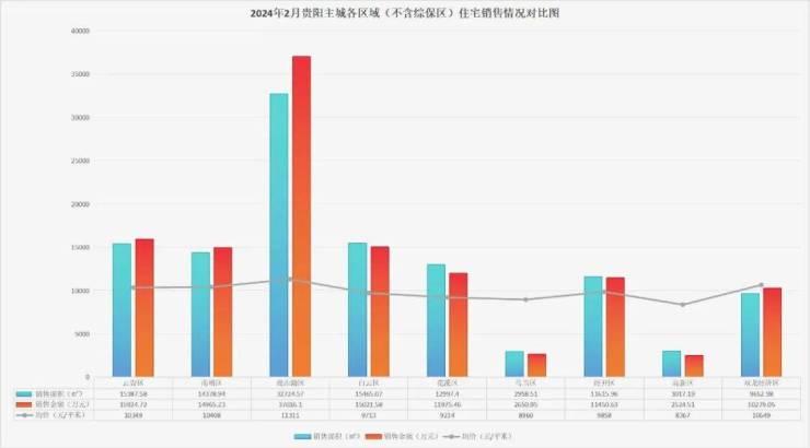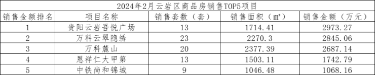 据贵州省房地产业协会统计数据,2024年2月,贵阳市(含三县一市)销售商品房1699套,销售面积19.94万平方米,销售金额22.68亿元;