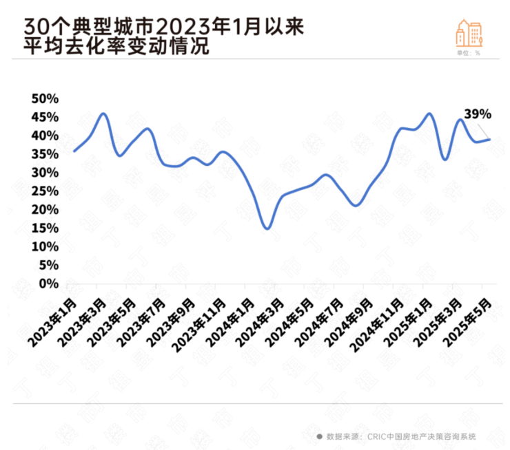 尽管5月楼市出现明显分化,但据克而瑞监测数据,30个重点城市5月平均开盘去化率为39%,环比上升1%,同比上升12%,与2023年高峰期基本持平,延续稳中向好。