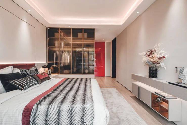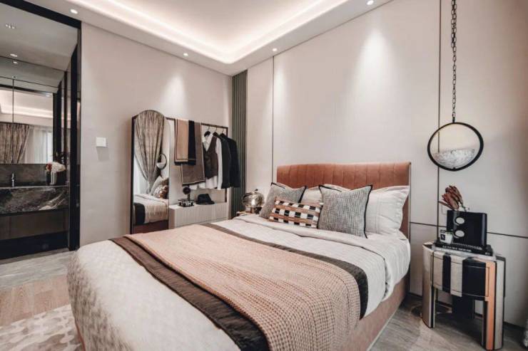主卧含独立卫浴,家人起居从容互不干扰,步入式衣帽间,随心收纳太太的衣服/鞋子/包包.……..主人私享的自在领地,生活的质感在此彰显。