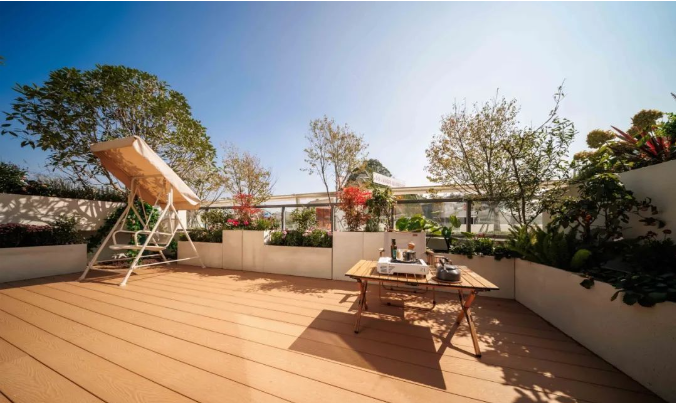 约40㎡露台, 都市里诗意天地,美好情愫于此生长,赋予悦然墅生活更高级的奢适。植一片花草,煮一壶清茶,闲观满园胜景,静听鸟语虫鸣。随东升西落的变幻,感受自然的韵律。山湖壮阔尽收眼底,亦可听风、抚月、互动光影。