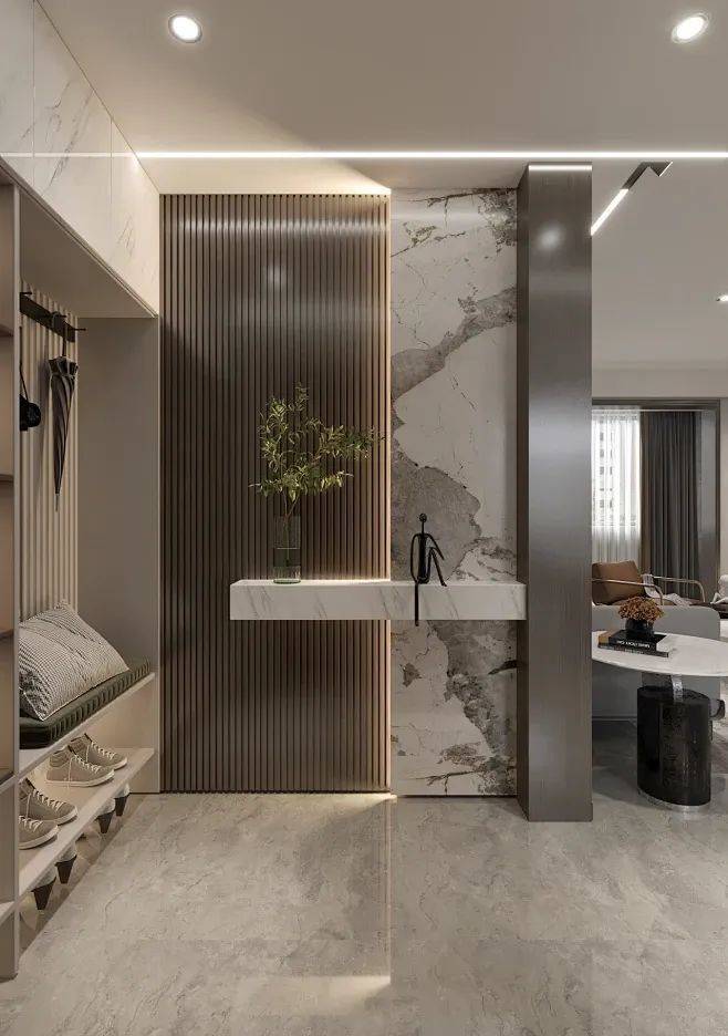 入户玄关,考究归家仪式,玄关收纳,储藏生活细节,归程美好,褪去喧嚣,安放秩序。出程协奏,昂扬乐章,开启希望,创造有温度的日常,触达内心深处的美好与感动。
