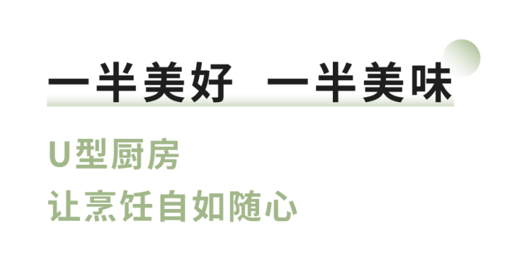 U型厨房,利用合理的空间布局,为操作者创造出流畅的烹饪动线。扩大厨房的空间视野,把洗涤区,操作台,烹饪区划分为三个区域,划分区域极其明确。