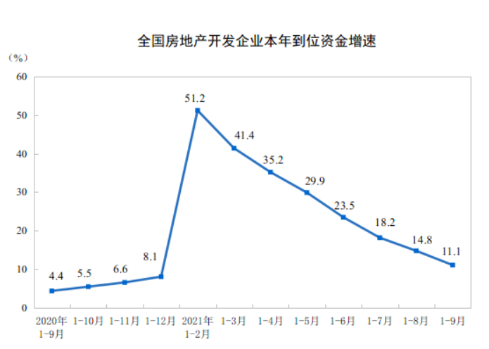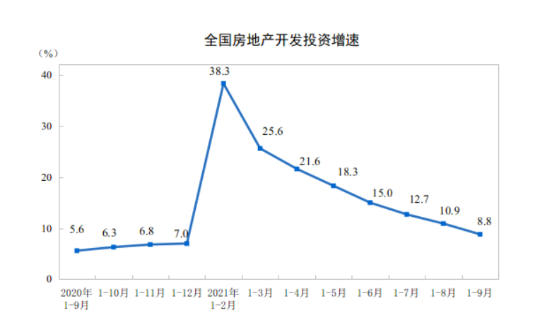 10月18日,国家统计局发布2021年前9个月房地产开发投资数据。数据显示,今年1-9月,全国房地产开发投资同比增长8.8%。