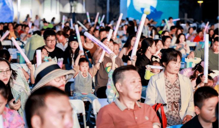 小区业主、街道住户、物业员工纷纷登台献艺,歌舞表演、相声小品等节目高潮迭起。台上演员载歌载舞,台下观众热情欢呼,温柔的月色下,上千名既熟悉又陌生的社区居民欢聚一堂,共叙邻里情。