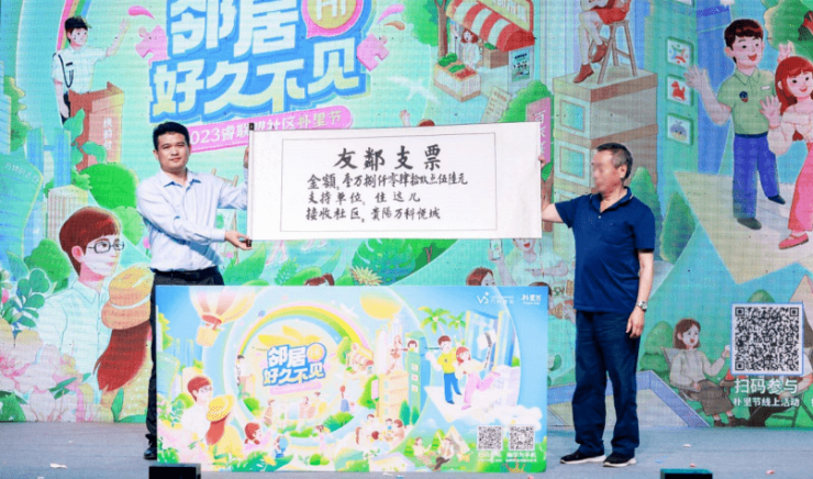 同时,“友邻计划”启幕更将朴里节开幕式推向高潮。“友邻计划”是住这儿app发起的“消费支持社区计划”,用于支持社区的硬件常新与文化建设。本次朴里节开幕式,在贵阳万科金域华府会场和万科理想城会场都分别签订了“友邻计划”,本次“友邻计划”募集到的资金将会用来为对应园区的设施设备进行更新、维护。
