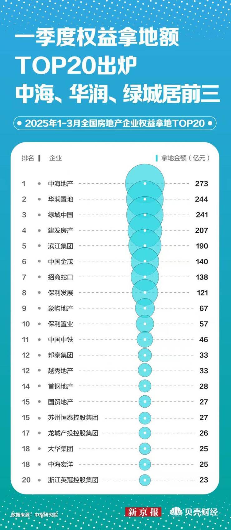 据中指研究院数据,2025年1-3月,TOP100企业拿地总额2895.8亿元,同比增长30.6%,增幅较1-2月扩大3.9个百分点。