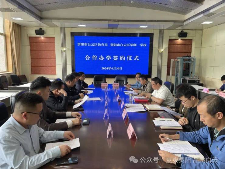 会上,白云区教育局相关负责人介绍合作办学情况;贵阳市白云区华师一学校作交流发言;双方代表签署合作办学协议。