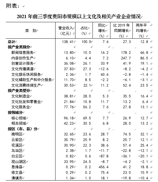 前三季度贵阳市规上文化产业企业营收138.41亿元
