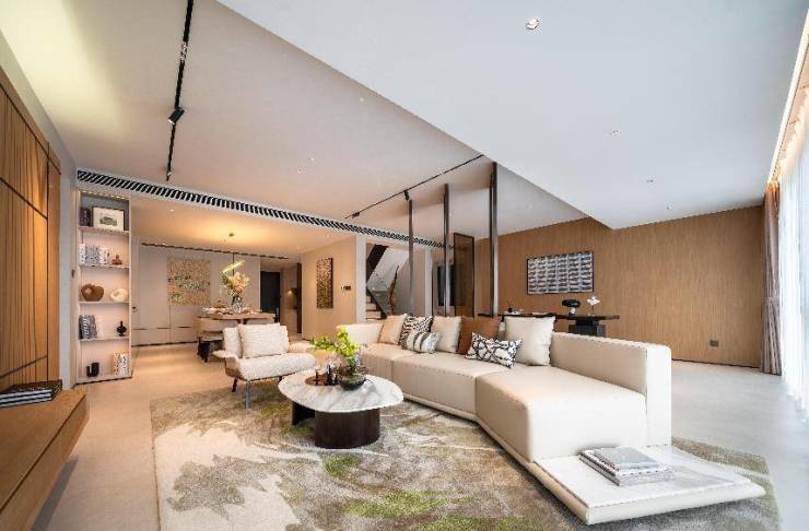 建面约128㎡华奢空中墅臻配露台设计,拥有独立电梯前室,客厅宽约4.5m,阳台开间约7.5m,二层跃层空间,整体开间约7.5m满足主人独立起居空间。